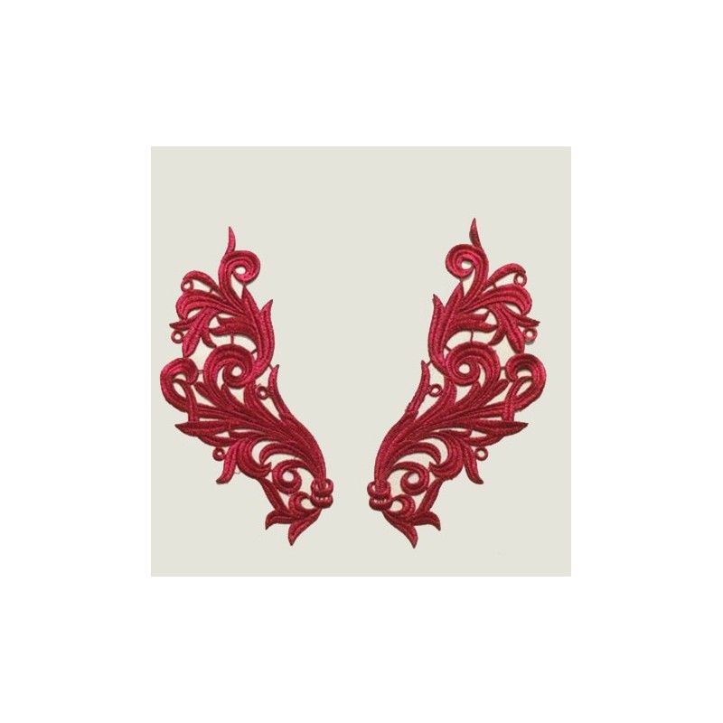 Applicazione In Pizzo colore Rosso, Misure Cm 9x23 in materiale poliestere 100%, ideale per arricchire i tuoi abiti da ballo o varie applicazioni.