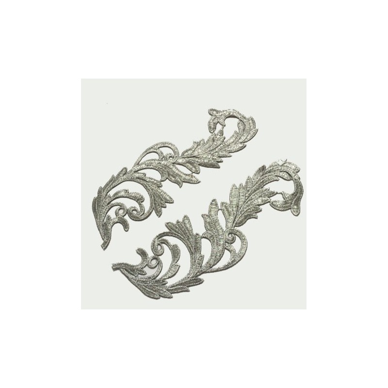 Applicazione di tessuto di pizzo silver con misure cm 24x7,5 adatti alle decorazioni ed arricchimenti per gli abiti di danza, di pattinaggio ed altro..